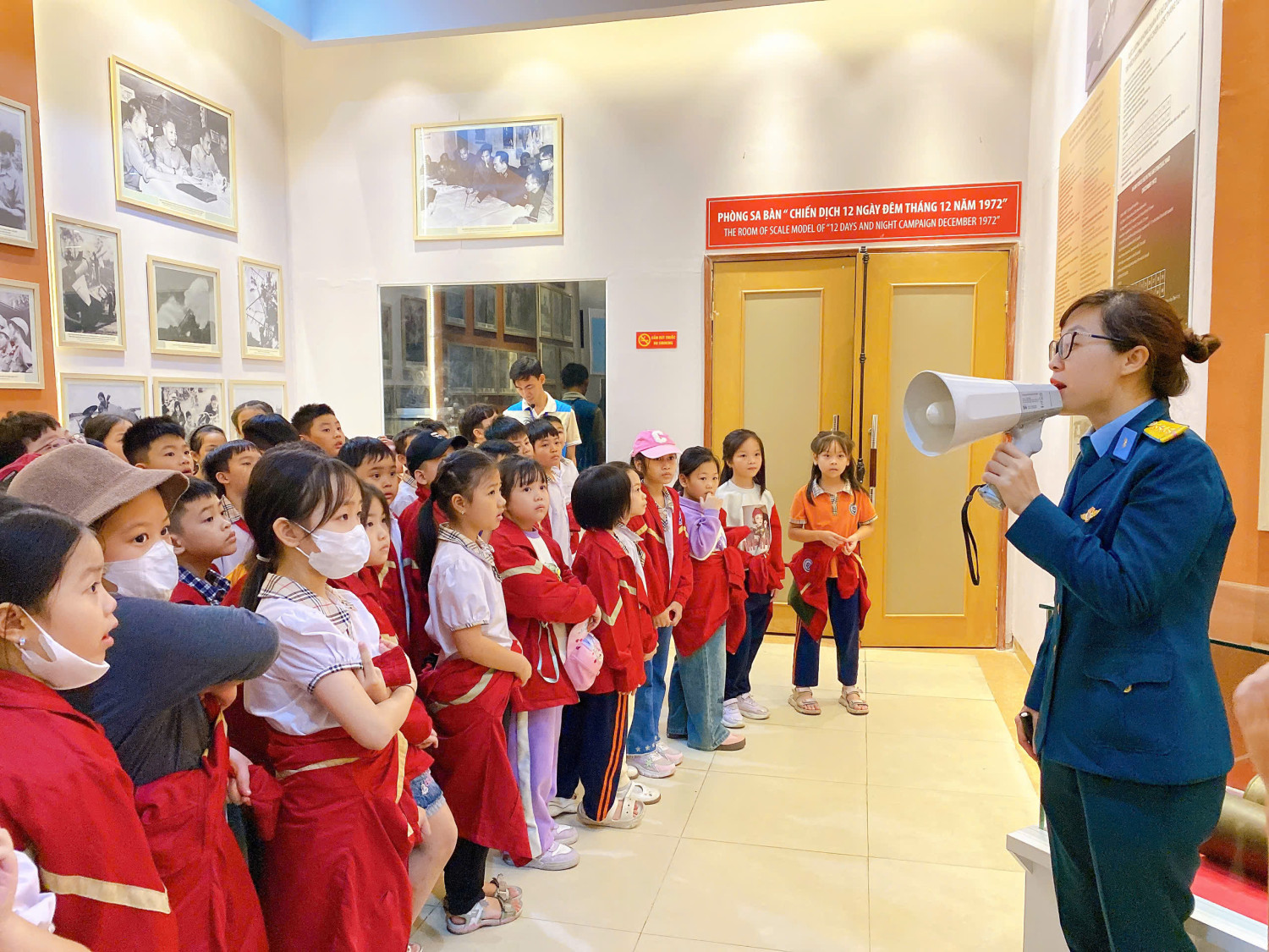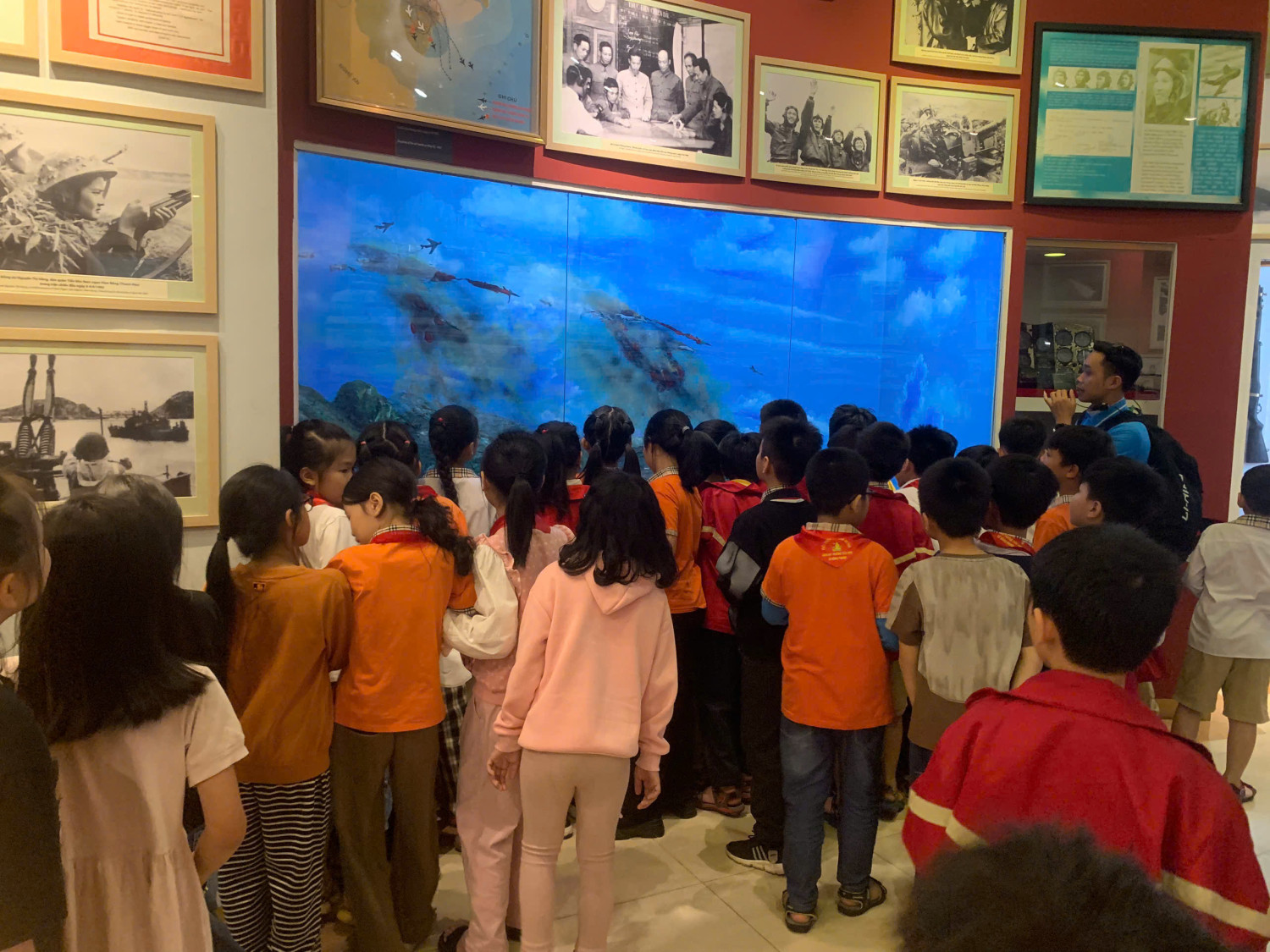 Các em đi tham quan từng khu vực và được nghe các cô chú hướng dẫn viên giới thiệu về lịch sử của những tư liệu quý giá. Sự vui sướng thể hiện trên khuôn mặt các em, khi được nhìn thấy những chiến máy bay chiến đấu, khẩu pháo khổng lồ và lắng nghe những câu chuyện lịch sử hào hùng của dân tộc.
