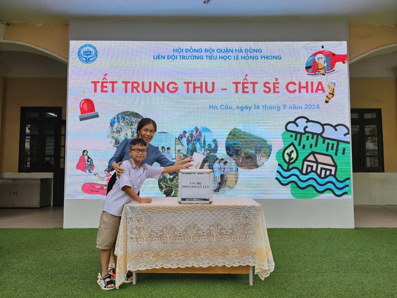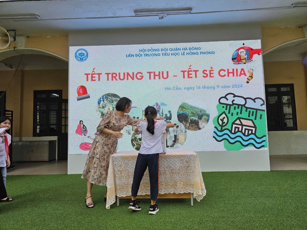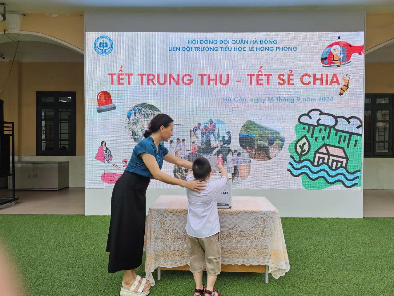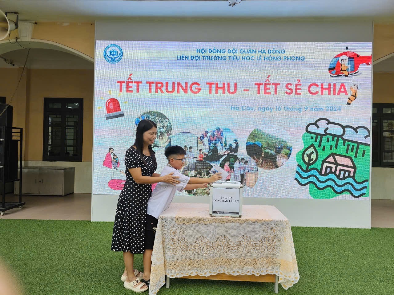 TRUNG THU 2024 không có múa lân, không có đầu sư tử, không rực rỡ sắc màu của các loại đèn lồng, ông sao và cũng vắng những mâm ngũ quả. Nhưng trong mỗi lớp học đều có một mâm cỗ đặc biệt - mâm cỗ ủng hộ với tấm lòng của giáo viên, nhân viên và học sinh Lê Hồng Phong hướng về đồng bào bị ảnh hưởng nặng nề bởi lũ lụt sau bão Yagi. Mùa TRUNG THU thật ý nghĩa khi tình yêu thương được lan tỏa từ trái tim đến trái tim.