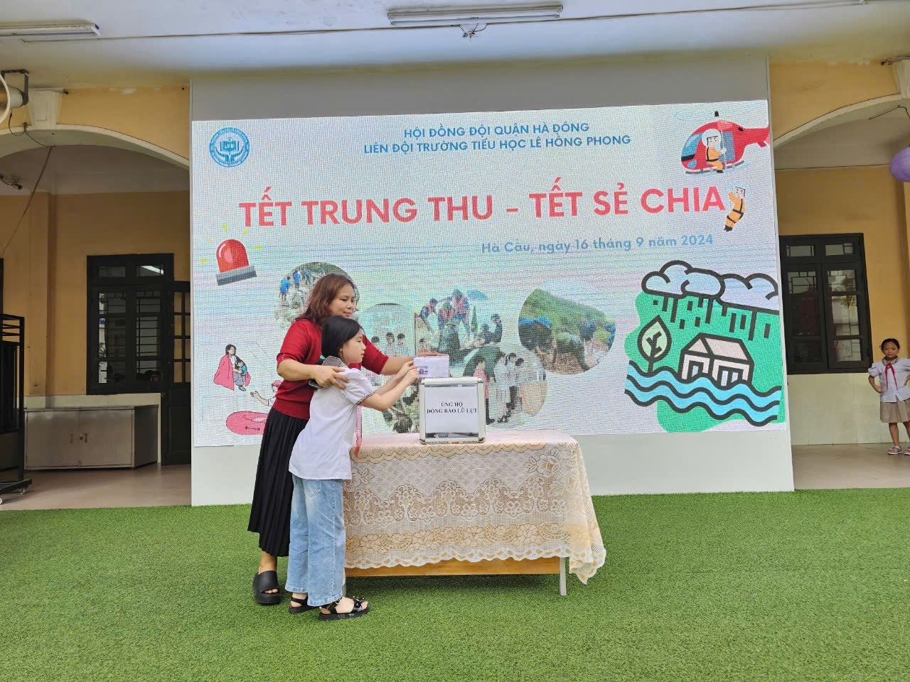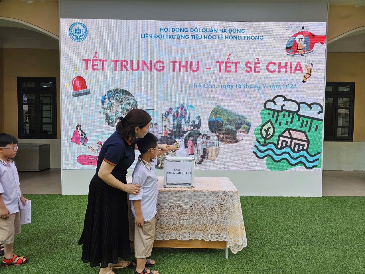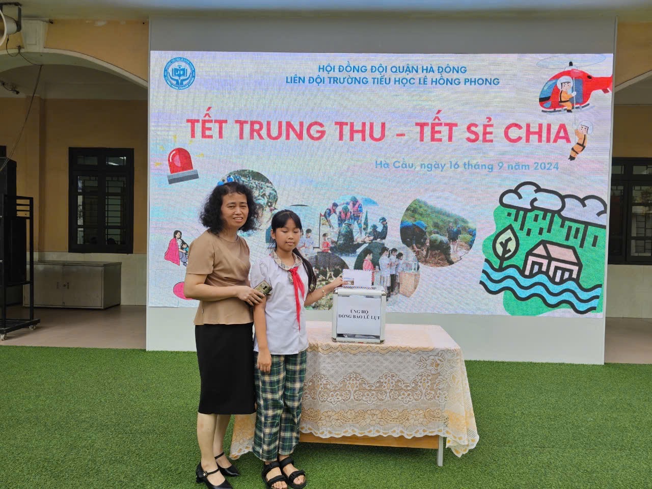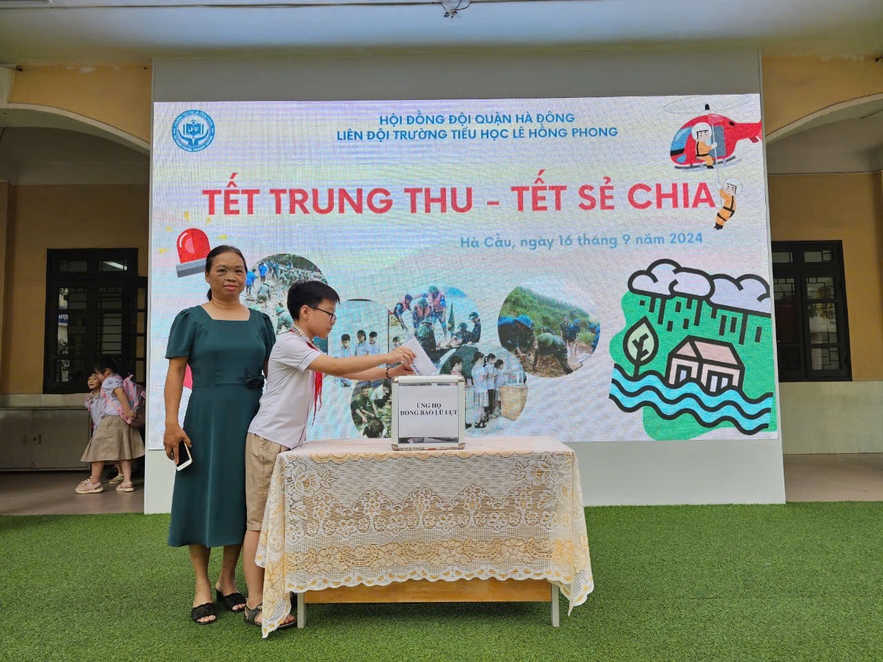 TRUNG THU 2024 không có múa lân, không có đầu sư tử, không rực rỡ sắc màu của các loại đèn lồng, ông sao và cũng vắng những mâm ngũ quả. Nhưng trong mỗi lớp học đều có một mâm cỗ đặc biệt - mâm cỗ ủng hộ với tấm lòng của giáo viên, nhân viên và học sinh Lê Hồng Phong hướng về đồng bào bị ảnh hưởng nặng nề bởi lũ lụt sau bão Yagi. Mùa TRUNG THU thật ý nghĩa khi tình yêu thương được lan tỏa từ trái tim đến trái tim.