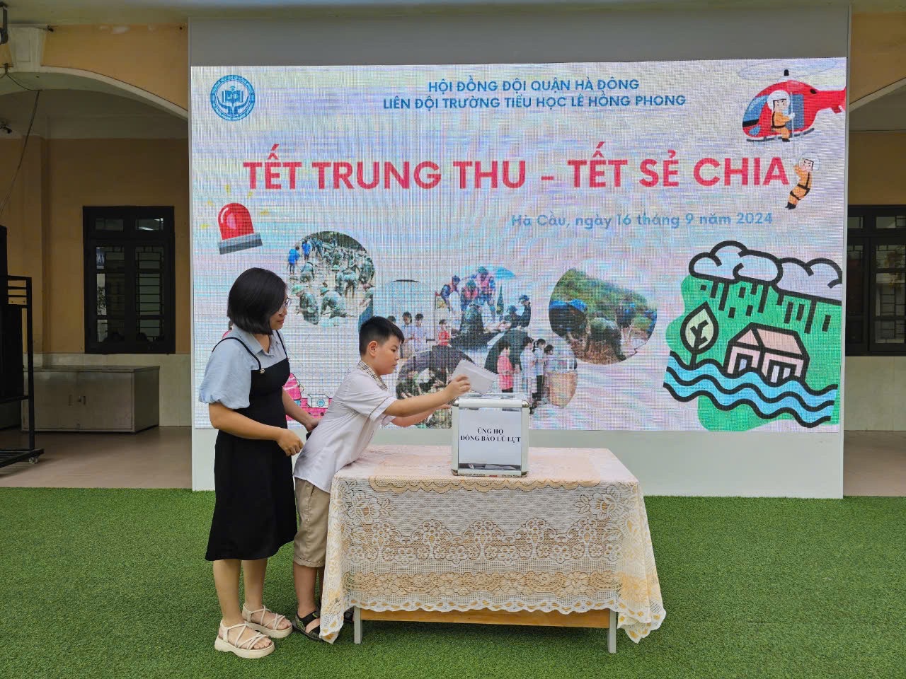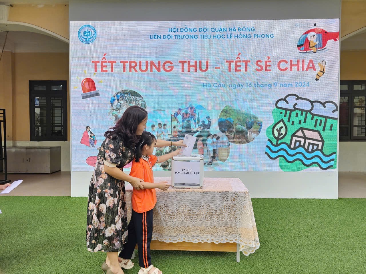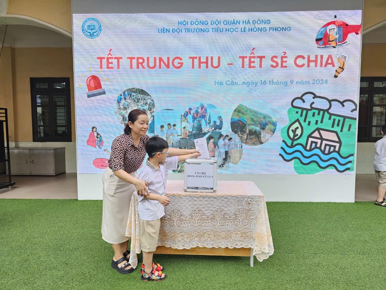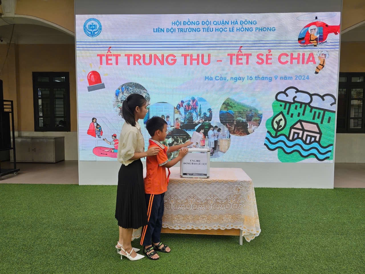 TRUNG THU 2024 không có múa lân, không có đầu sư tử, không rực rỡ sắc màu của các loại đèn lồng, ông sao và cũng vắng những mâm ngũ quả. Nhưng trong mỗi lớp học đều có một mâm cỗ đặc biệt - mâm cỗ ủng hộ với tấm lòng của giáo viên, nhân viên và học sinh Lê Hồng Phong hướng về đồng bào bị ảnh hưởng nặng nề bởi lũ lụt sau bão Yagi. Mùa TRUNG THU thật ý nghĩa khi tình yêu thương được lan tỏa từ trái tim đến trái tim.