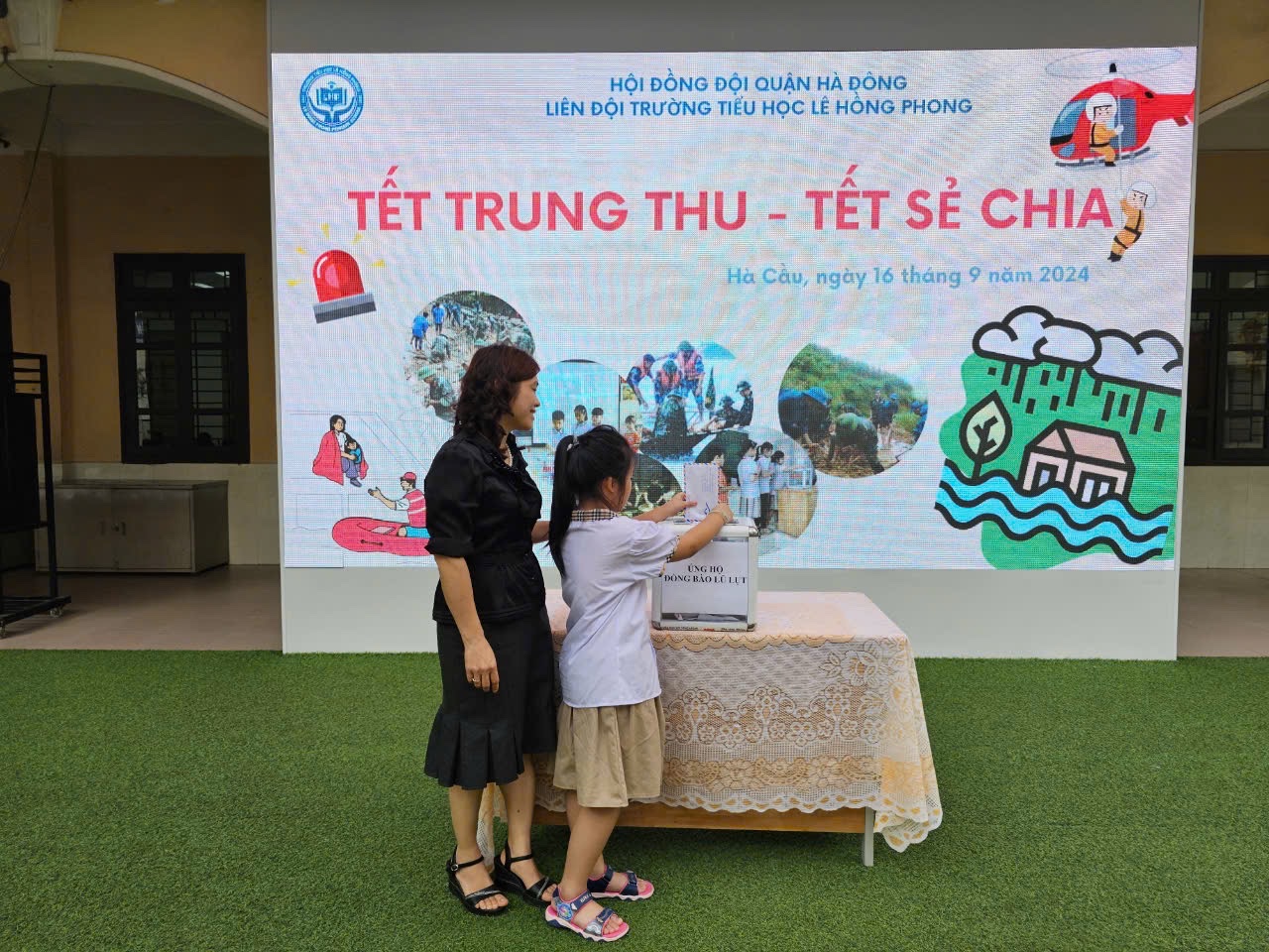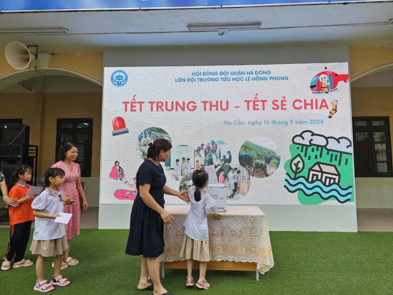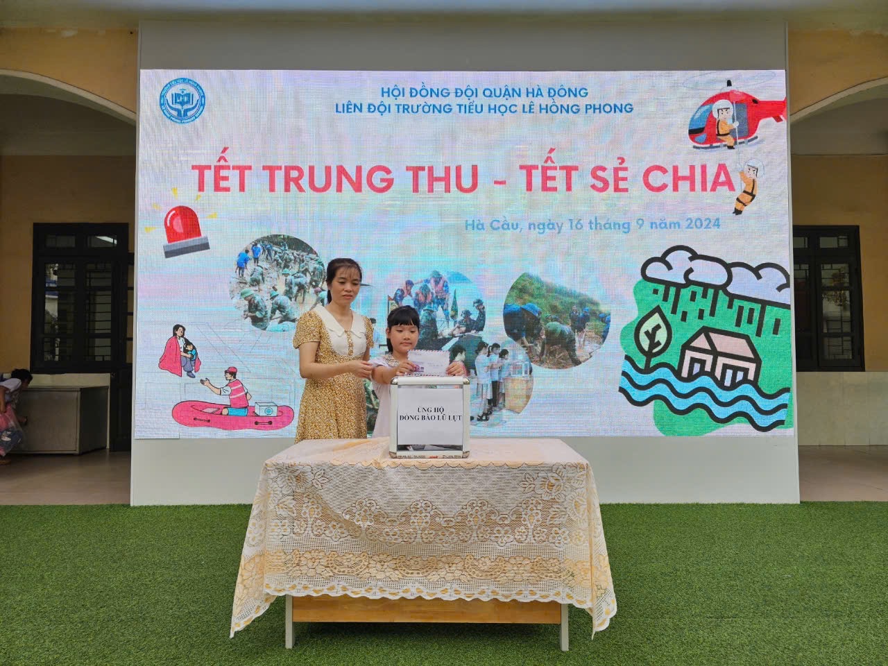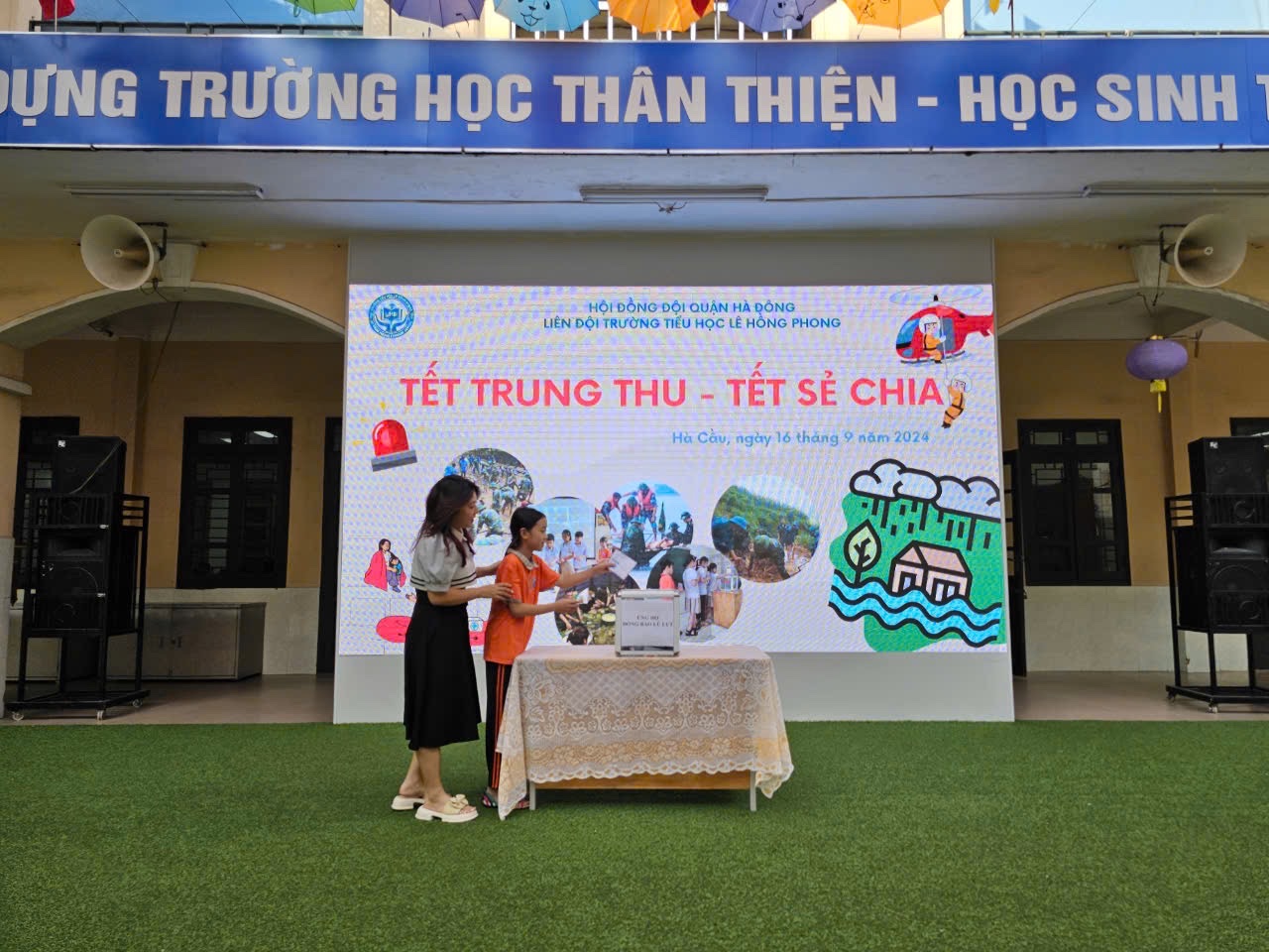 TRUNG THU 2024 không có múa lân, không có đầu sư tử, không rực rỡ sắc màu của các loại đèn lồng, ông sao và cũng vắng những mâm ngũ quả. Nhưng trong mỗi lớp học đều có một mâm cỗ đặc biệt - mâm cỗ ủng hộ với tấm lòng của giáo viên, nhân viên và học sinh Lê Hồng Phong hướng về đồng bào bị ảnh hưởng nặng nề bởi lũ lụt sau bão Yagi. Mùa TRUNG THU thật ý nghĩa khi tình yêu thương được lan tỏa từ trái tim đến trái tim.