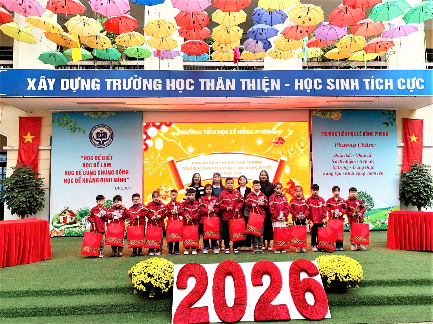 Sáng nay ngày 11/02/2026, trong không khí rộn ràng những ngày cận Tết Nguyên đán Bính Ngọ 2026, Ban giám hiệu Trường Tiểu học Lê Hồng Phong phối hợp cùng Ban đại diện cha mẹ học sinh nhà trường đã tổ chức trao tặng 14 phần quà Tết ý nghĩa tới các em học sinh có hoàn cảnh khó khăn.