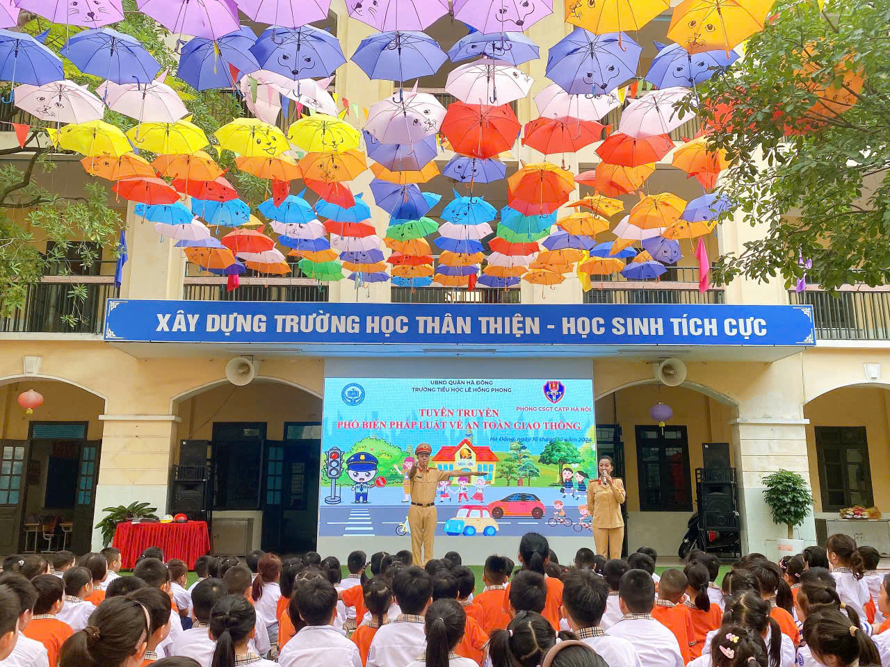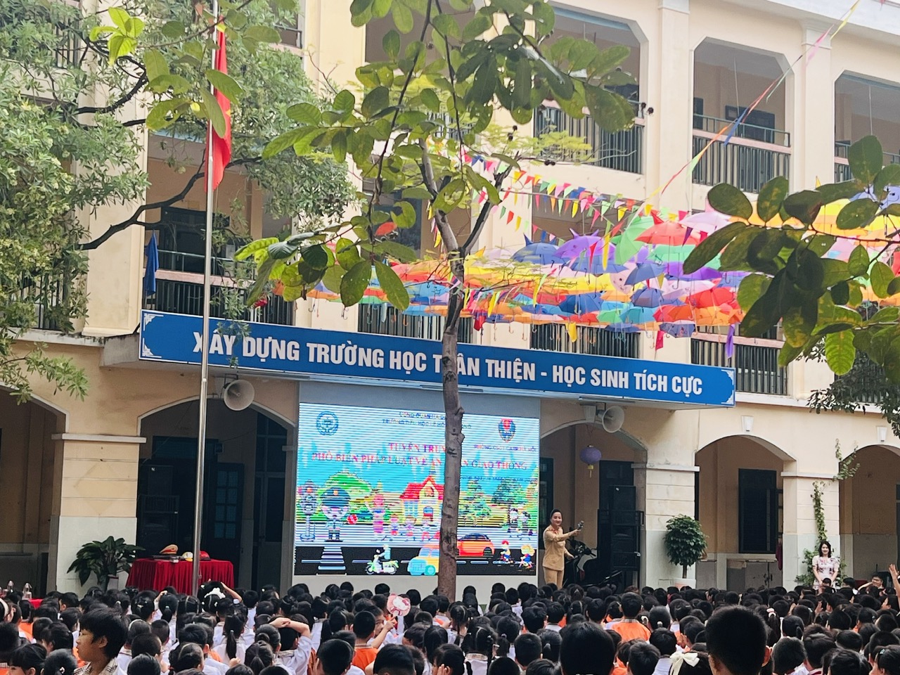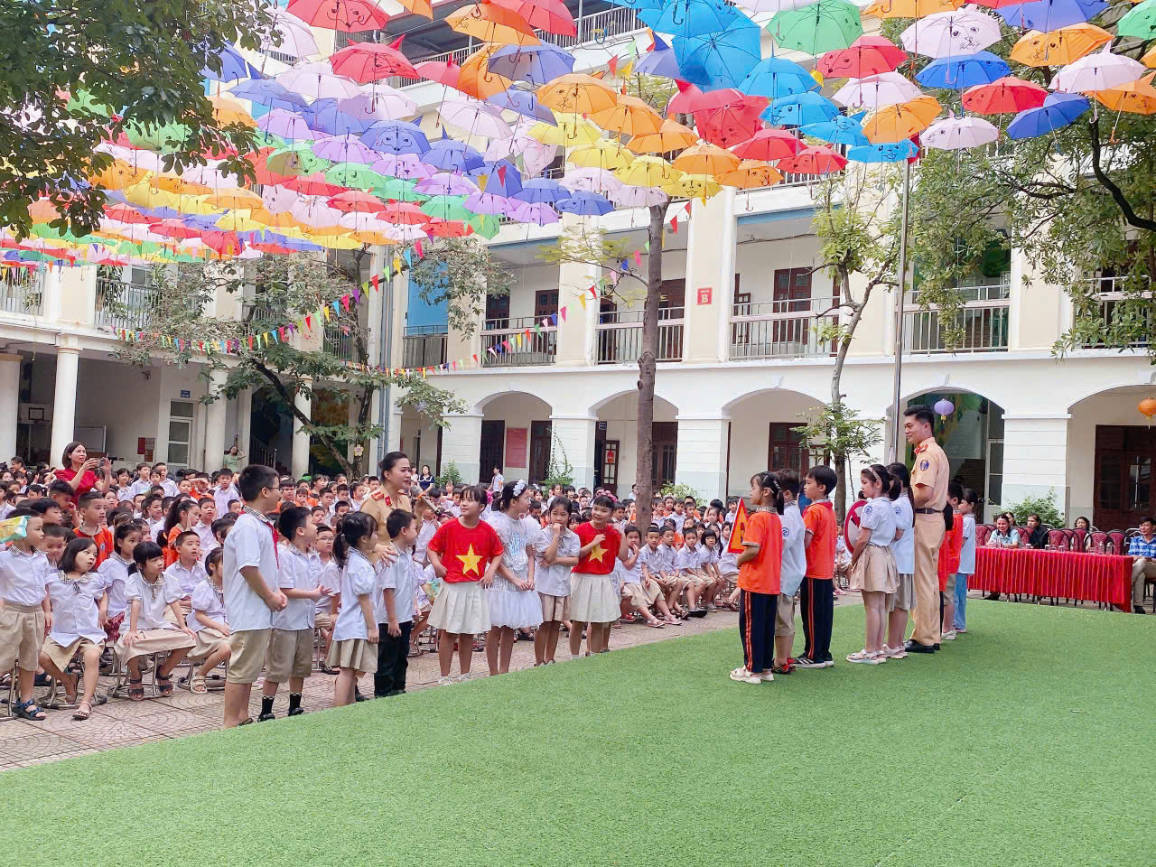 Như chúng ta đã biết, tai nạn giao thông là một trong những nguyên nhân hàng đầu gây tử vong và thương tích cho trẻ em tại Việt Nam. Mỗi ngày trôi qua, hàng trăm hàng ngàn sinh mạng trẻ em đang gặp nguy hiểm do bản thân hoặc cha mẹ chưa chấp hành đúng các quy định khi tham gia giao thông. Trẻ nhỏ là nhóm đối tượng đặc biệt dễ bị tổn thương trước các tình huống giao thông nguy hiểm, vốn thường xảy ra khi các em đang trên đường tới trường hay trên đường trở về nhà sau mỗi ngày học tập. Nhận thức được tầm quan trọng ấy, ngày 16/10/2024, nhà trường đã phối hợp với Đội tuyên truyền của lực lượng CSGT Công an TPHN tổ chức chương trình "TUYÊN TRUYỀN PHỔ BIẾN PHÁP LUẬT VỀ AN TOÀN GIAO THÔNG” để tập huấn các kiến thức về Luật ATGT cho các em học sinh.