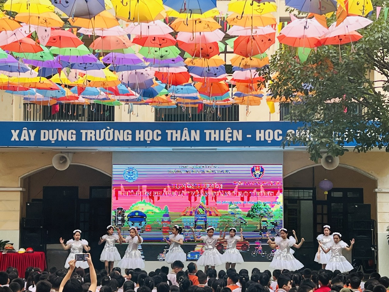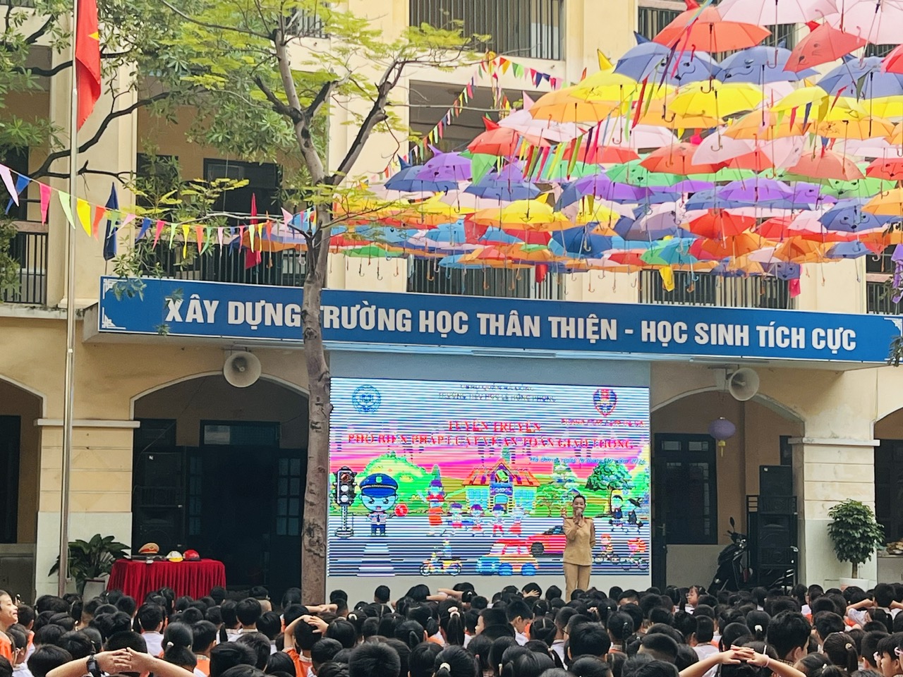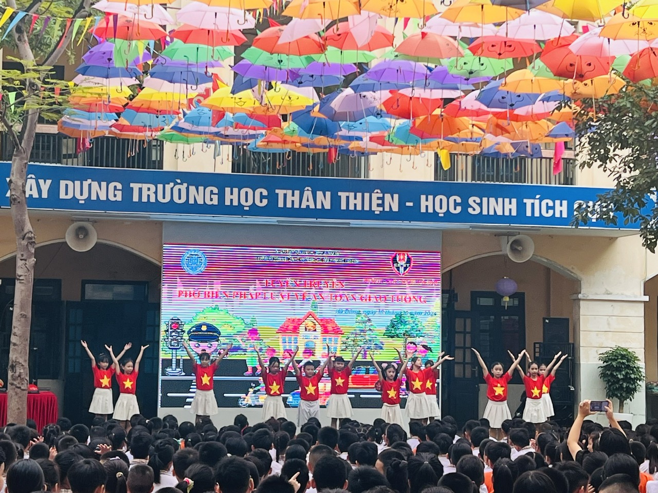 Như chúng ta đã biết, tai nạn giao thông là một trong những nguyên nhân hàng đầu gây tử vong và thương tích cho trẻ em tại Việt Nam. Mỗi ngày trôi qua, hàng trăm hàng ngàn sinh mạng trẻ em đang gặp nguy hiểm do bản thân hoặc cha mẹ chưa chấp hành đúng các quy định khi tham gia giao thông. Trẻ nhỏ là nhóm đối tượng đặc biệt dễ bị tổn thương trước các tình huống giao thông nguy hiểm, vốn thường xảy ra khi các em đang trên đường tới trường hay trên đường trở về nhà sau mỗi ngày học tập. Nhận thức được tầm quan trọng ấy, ngày 16/10/2024, nhà trường đã phối hợp với Đội tuyên truyền của lực lượng CSGT Công an TPHN tổ chức chương trình "TUYÊN TRUYỀN PHỔ BIẾN PHÁP LUẬT VỀ AN TOÀN GIAO THÔNG” để tập huấn các kiến thức về Luật ATGT cho các em học sinh.