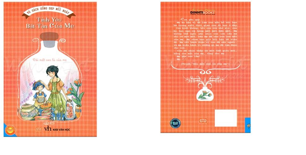 Cuốn sách được trình bày ấn tượng ngay từ trang bìa với hình ảnh người mẹ đang ân cần chỉ bảo cho đứa con của mình. Tên sách được in bằng dòng chữ màu trắng nổi bật trên bìa hồng cam. Mặt sau cuốn sách là dòng tâm sự trích từ câu chuyện “Đôi mắt con là của mẹ”.