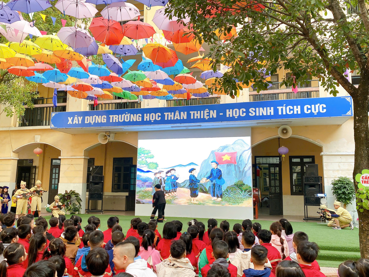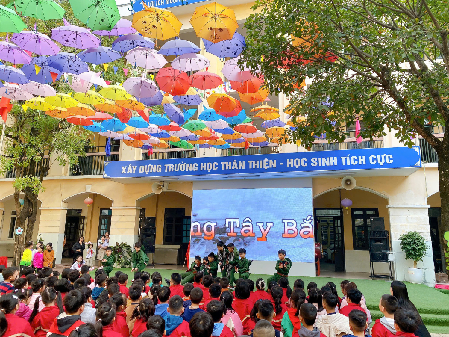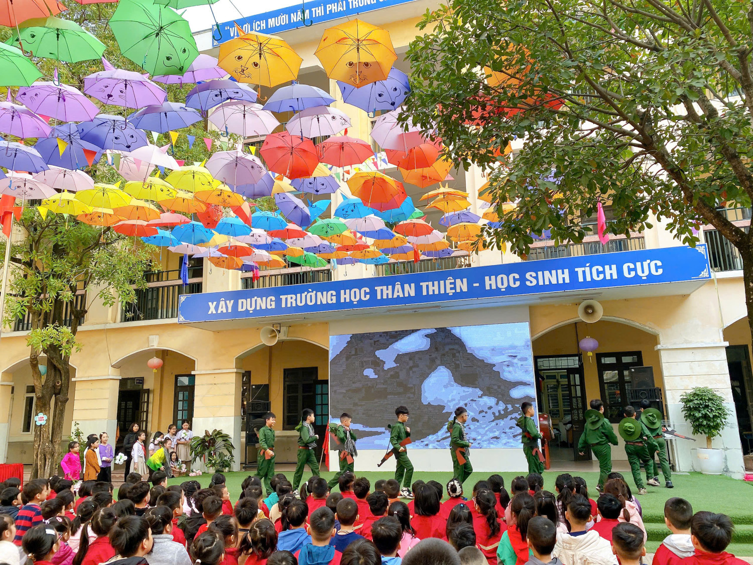 Sinh hoạt dưới cờ Tuần 16, Liên đội trường Tiểu học Lê Hồng Phong đã tổ chức biểu diễn văn nghệ, sân khấu hoá qua hoạt động nhân kỷ niệm 80 năm Ngày thành lập Quân đội nhân dân Việt Nam và 35 năm Ngày hội Quốc phòng toàn dân.
