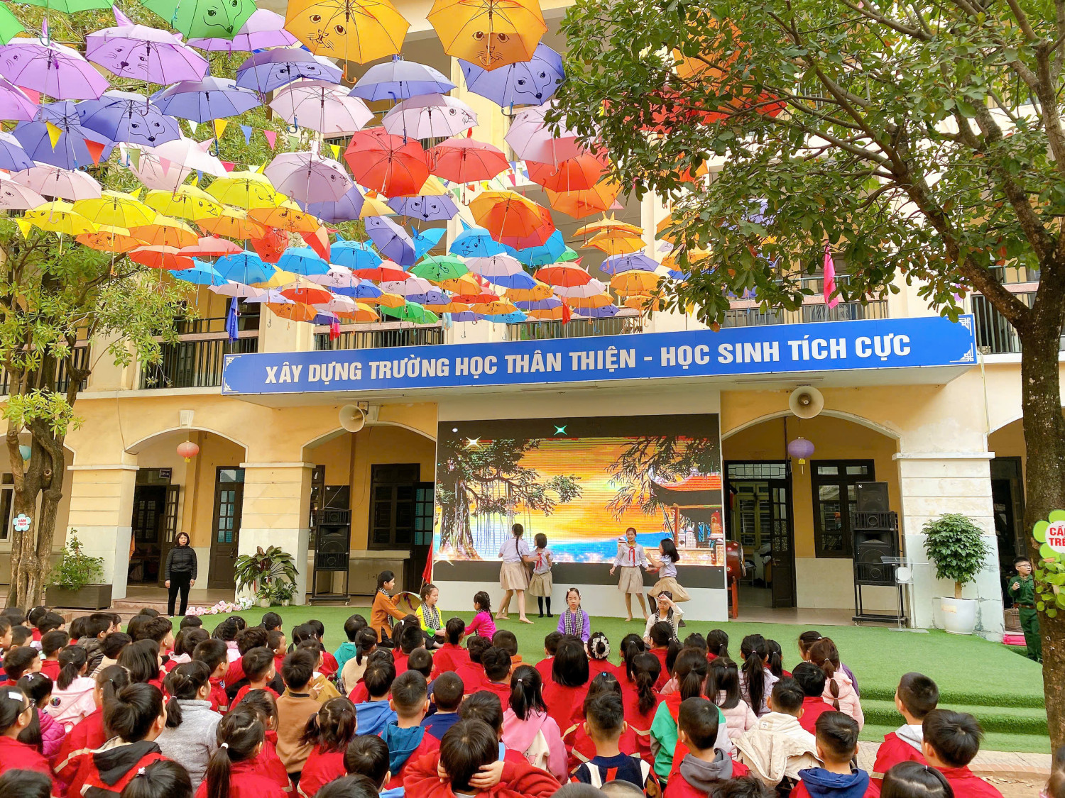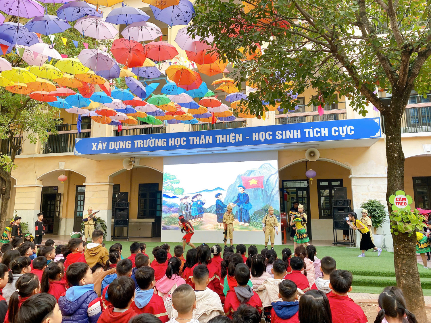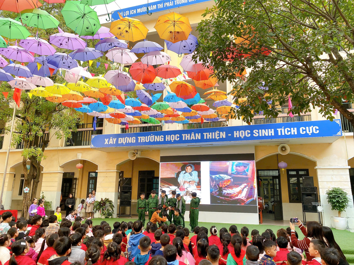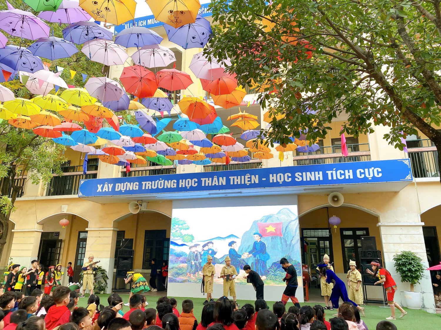 Sinh hoạt dưới cờ Tuần 16, Liên đội trường Tiểu học Lê Hồng Phong đã tổ chức biểu diễn văn nghệ, sân khấu hoá qua hoạt động nhân kỷ niệm 80 năm Ngày thành lập Quân đội nhân dân Việt Nam và 35 năm Ngày hội Quốc phòng toàn dân.